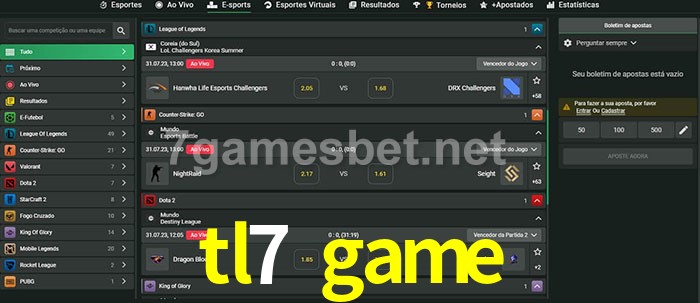 O tl7 game oferece uma grande seleção de opções de apostas em e-sports com probabilidades competitivas